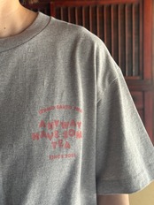 グレーのボディにサーモンピンク(またはグリーン)のロゴマークが並ぶ、夏の終わりに着たい1枚。肌触りの良い綿100%の生地で、日常のカジュアルスタイルにぴったりなアイテムです。