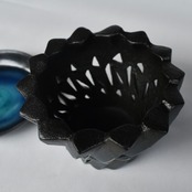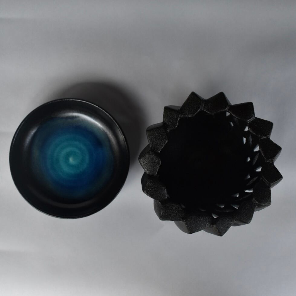 空気が乾ききる前、まだやわらかな粘土にひとつずつ穴をあけることで、通常作よりも多くの空気口を設けています。