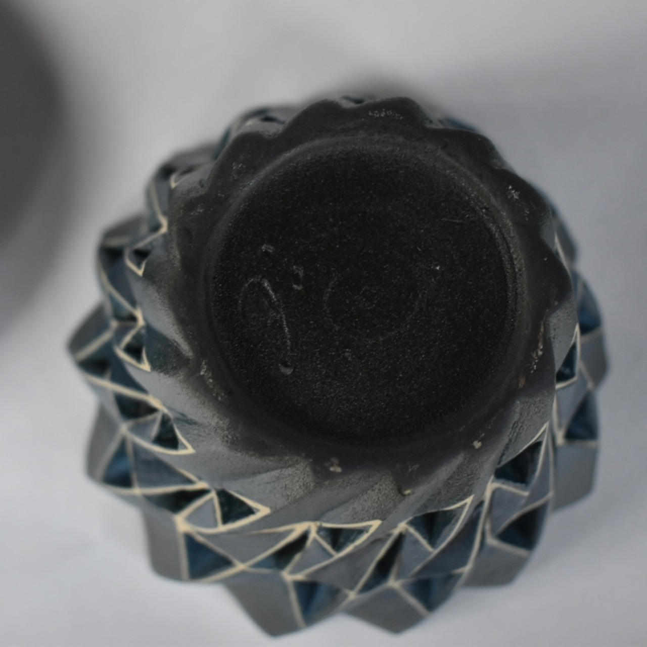 黒のマットな質感に、白いラインが静かに浮かび上がる幾何学模様。
